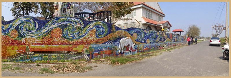 接著導覽車要左轉,在角落有一個社區的立牌,接著開始有許多的馬賽克牛,為什麼是「牛」,因為農村社會和牛密不可分,不僅是不可或缺的勞動力,也是家庭生計的依賴,牛早已經成為農村歷史、生活與文化的一部分。~部分文字引用農業兒童網 牛~